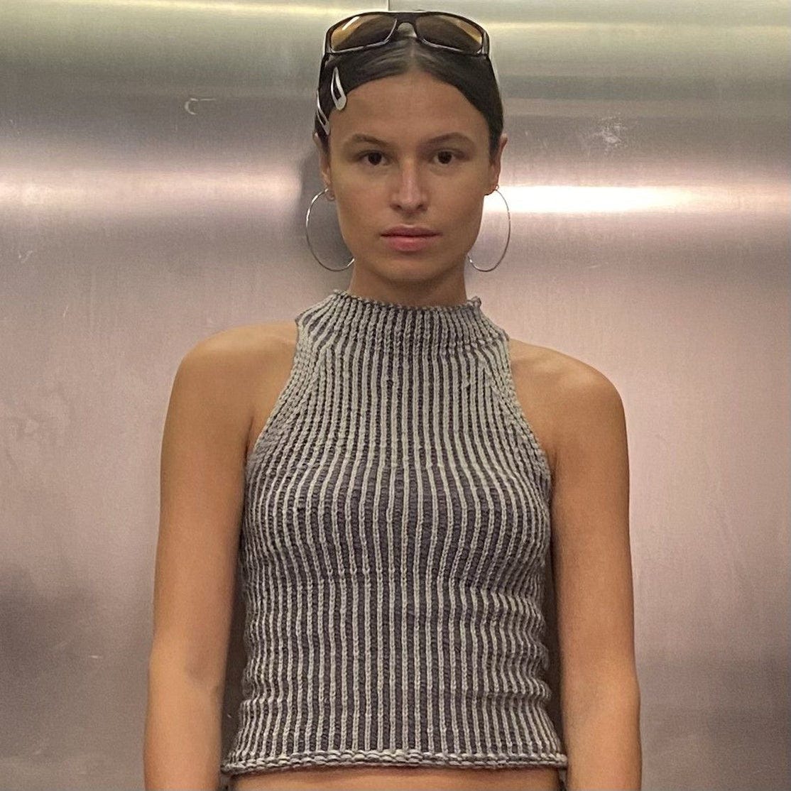I finished the Silhouette Top by Lykkie Knit and ended redoing the bottom three times. Something about that pattern doesn’t work with my body ( I’m not the only one I’ve seen some discourse on Instagram about this exact top ) and I have tried many times to rework it. Alas, it lays in a basket with the bottom still frogged. I also have the Vivian Cardigan by Kiss Kiss Rhinestone on the needles, but again it lays half finished cause it is simply too hot to work on a thick cardigan right now. With that all being said… I am still very eager to get a project going. There are so many people making extremely sick patterns right now that it’s hard to decide what’s first. I have been really interested in knit tshirts right now, cottons ones obviously, and found this pattern from the 80’s that seems extremely quick and easy ( linked #1 ).