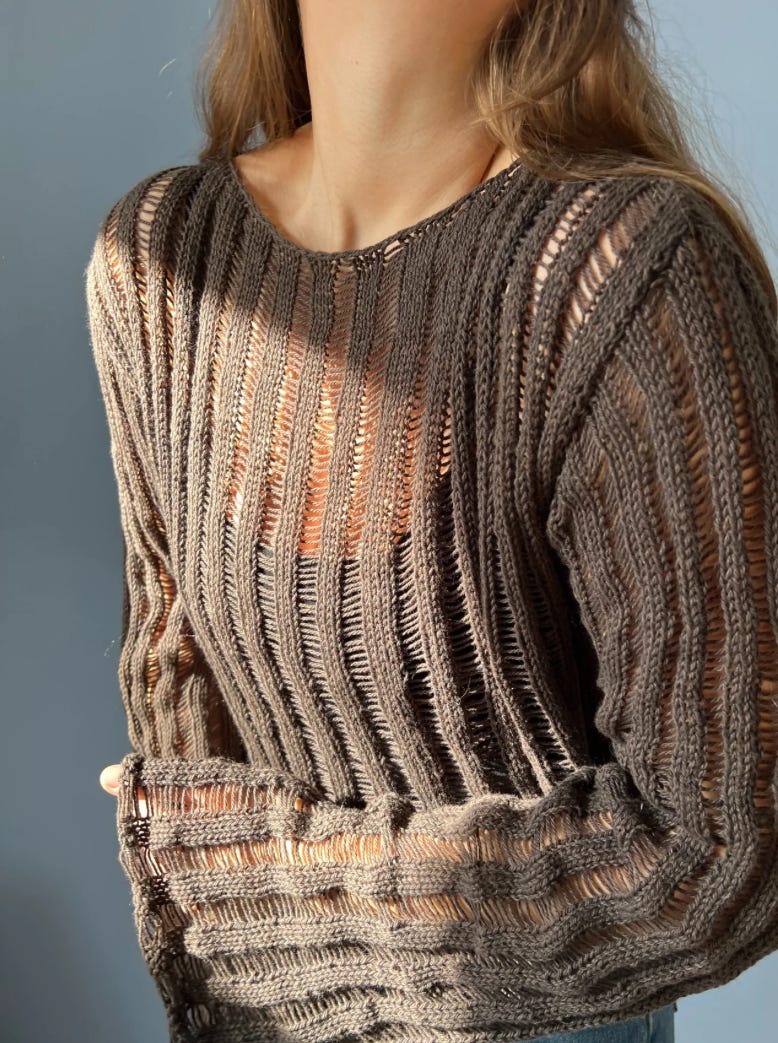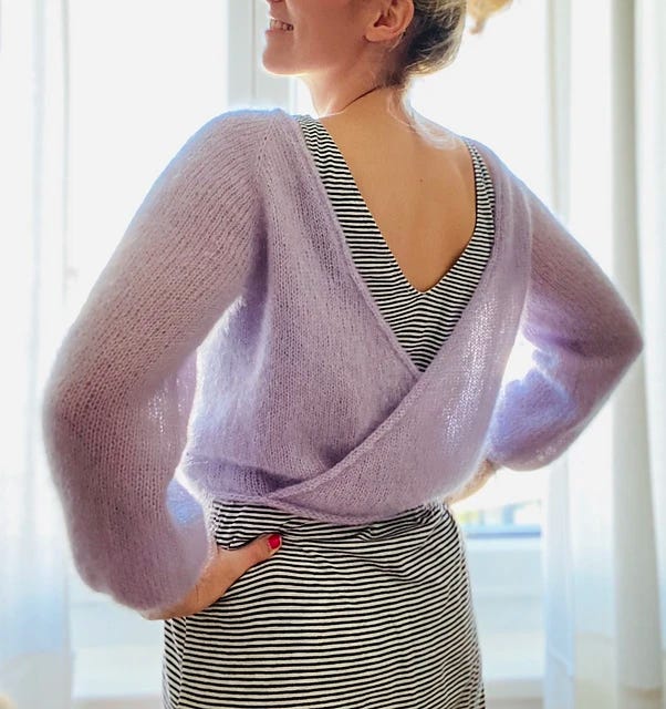 I actually just found this one today and was really taken aback by the design. In knitwear you don’t really see a lot of silhouettes like this this is the kind of top that I’ve seen made in a silk or chiffon rather than a knit so it adds a really floaty delicate mess. My one worry is that due to that it will take forever to knit and the needles will be extremely small.