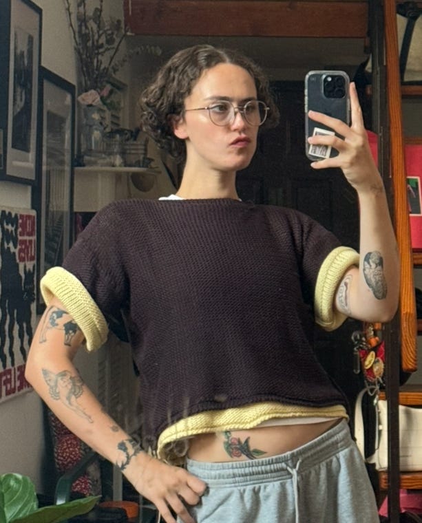 It’s way easier to translate hand knits to machine knits than i was expecting… feels like there will be a lot more of that in my future. Making the two tops was 100 times quicker than I anticipated at first, which I think is a reason I had put off following other peoples patterns for so long.