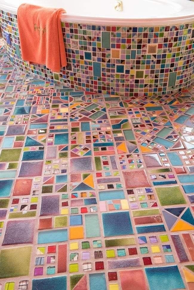 With that being said, welcome to a collection of really cool and artistic bathroom tiling. If I had a space that I could renovate like that, I would 100% do something insane like this to the bathroom. There’s such beauty in letting the material slightly control the design colorway of the space.